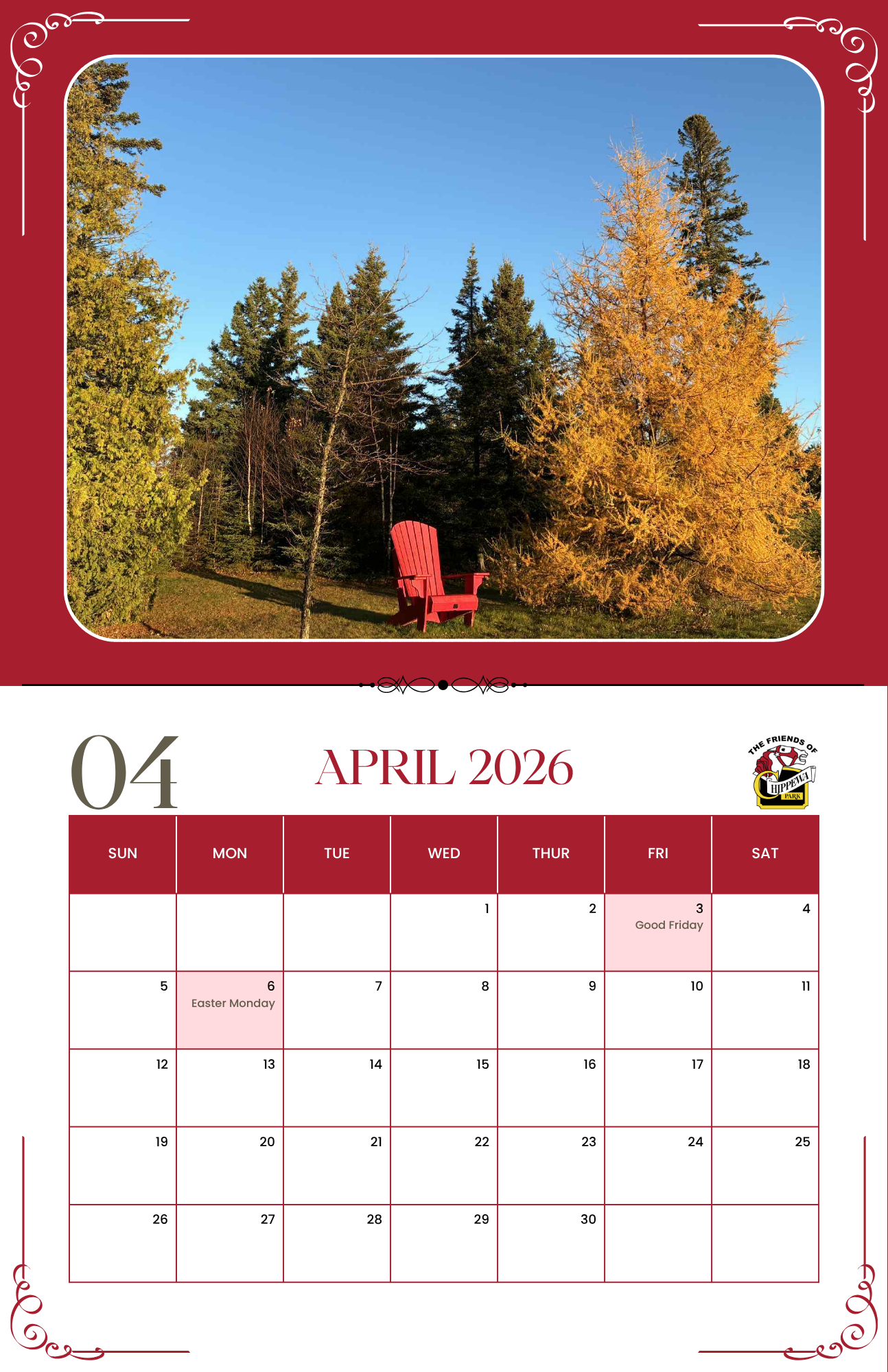 Celebrate the beauty of Chippewa Park all year long with our 2026 calendar. Featuring stunning scenic views from across the park, each month highlights the natural charm and vibrant landscapes that make Chippewa Park special. Perfect for enjoying a year-round connection to the park and a thoughtful gift for family and friends.